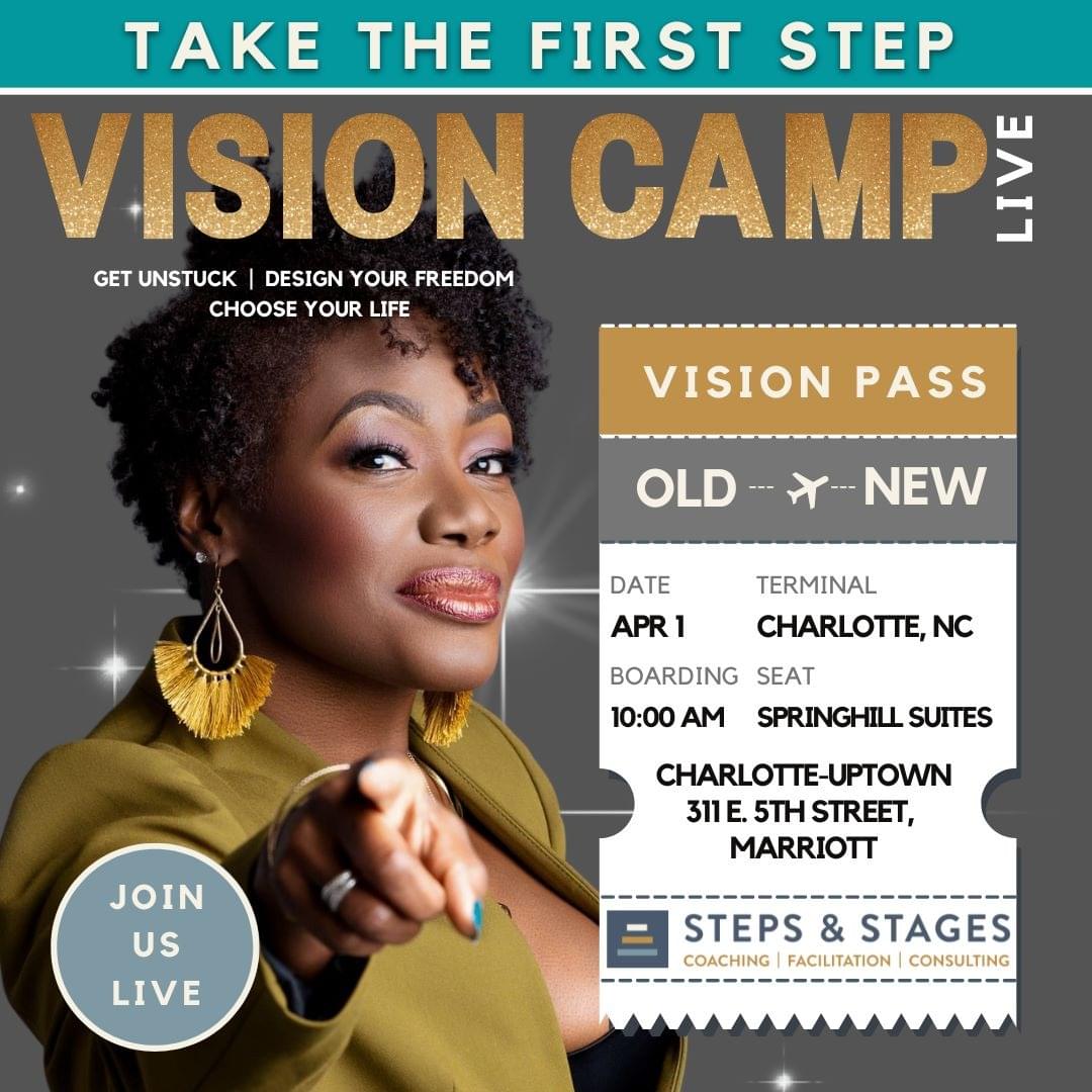 On the heels of speaking in Montego Bay, Jamaica, Miami FL, Burlington, VT and Sedona, AZ, Coach Christal is ecstatic to host Vision Camp Live in her home state of North Carolina to help you Get Unstuck, Gain Clarity, Build Confidence and Live Life by Design not Default